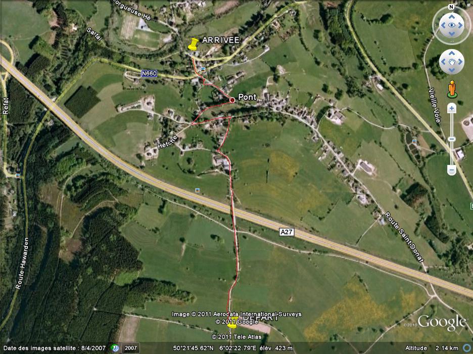 Depuis Waimes, prendre direction Malmedy jusqu’au Mémorial de Baugnez, là suivre la direction de Ligneuville, passer le village de Ligneuville et à sa sortie prendre à droite direction Pont.